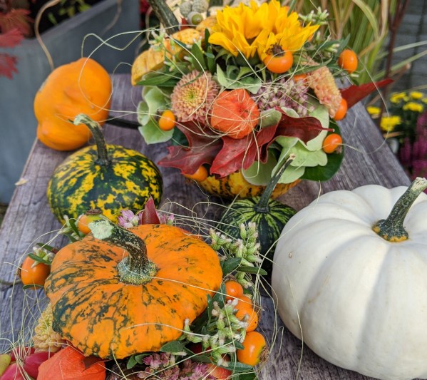 Geniessen Sie die ersten Herbstboten und erfreuen Sie sich an all den leuchtenden Blüten, Früchten und Gräsern. Wir haben ein tolle Auswahl mit vielen einheimischen Blumen und Pflanzen und allerlei haltbaren Trockenblumen und herbstlichen Geschenken für Sie bereit.
